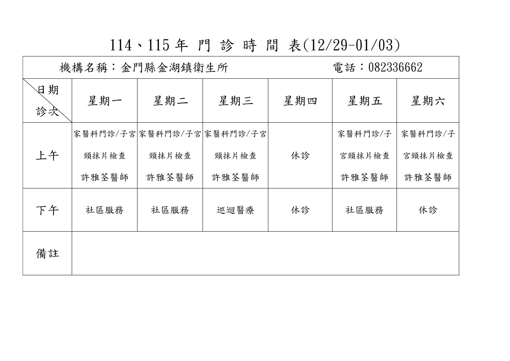 114年1~6月金門縣金湖鎮衛生所健兒門診時間表